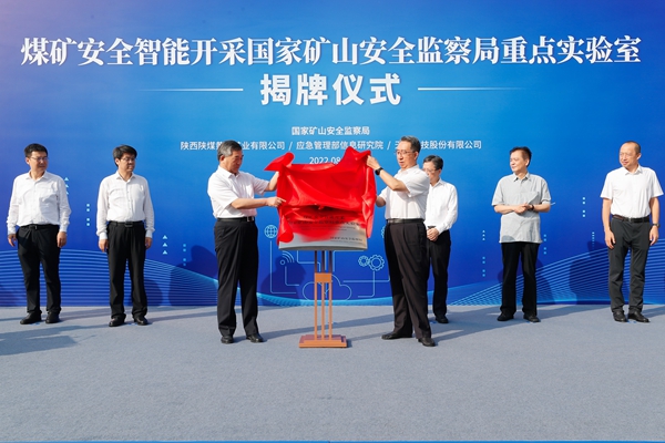 8月12日上午,國家礦山安全監(jiān)察局第一批第一個重點實驗室揭牌儀式在陜煤集團黃陵礦業(yè)公司舉行。應急管理部副部長、國家礦山安全監(jiān)察局局長黃玉治,陜西省政府副秘書長丁德明,陜西省應急管理廳廳長孫喜民,國家礦山安全監(jiān)察局陜西局局長張巍,延安市常務副市長劉曉軍,陜煤集團黨委書記、董事長楊照乾,黨委委員、副總經(jīng)理王世斌等相關領導出席揭牌儀式。國家礦山安全監(jiān)察局綜合司司長薛劍光主持揭牌儀式。